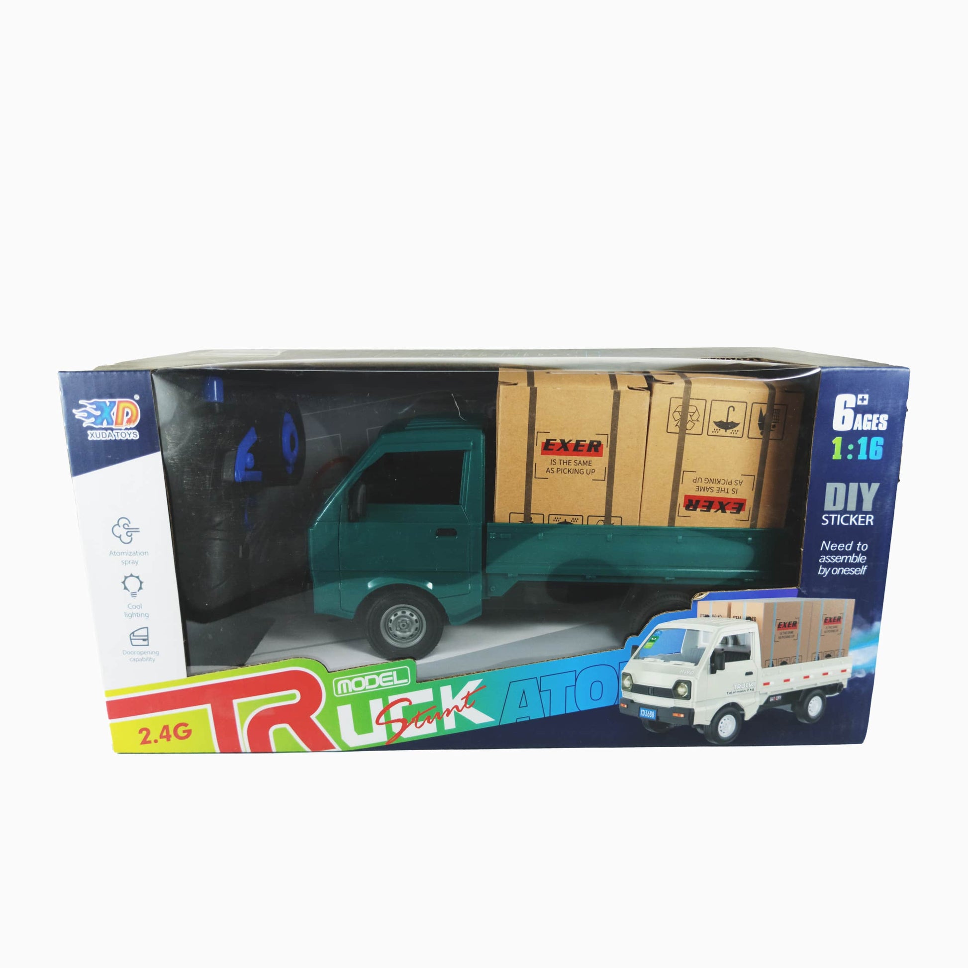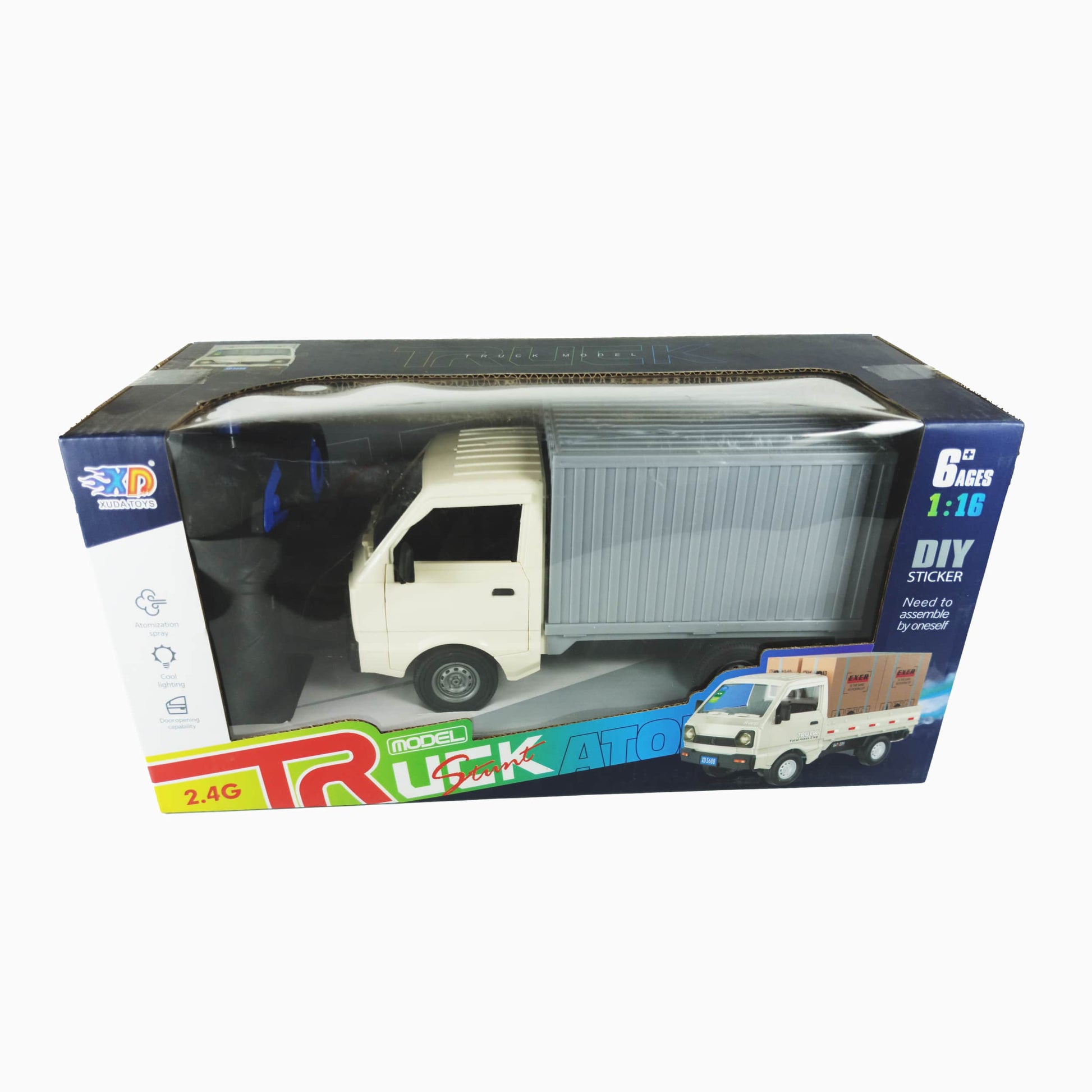 This remote-controlled truck model comes in a 1:16 scale, replicating a full-sized delivery truck with high fidelity. It includes a DIY sticker set that allows kids to personalize their truck with various decals, enhancing their engagement and providing a unique touch to each model. The toy is designed with robust and durable materials, suitable for indoor and outdoor play.