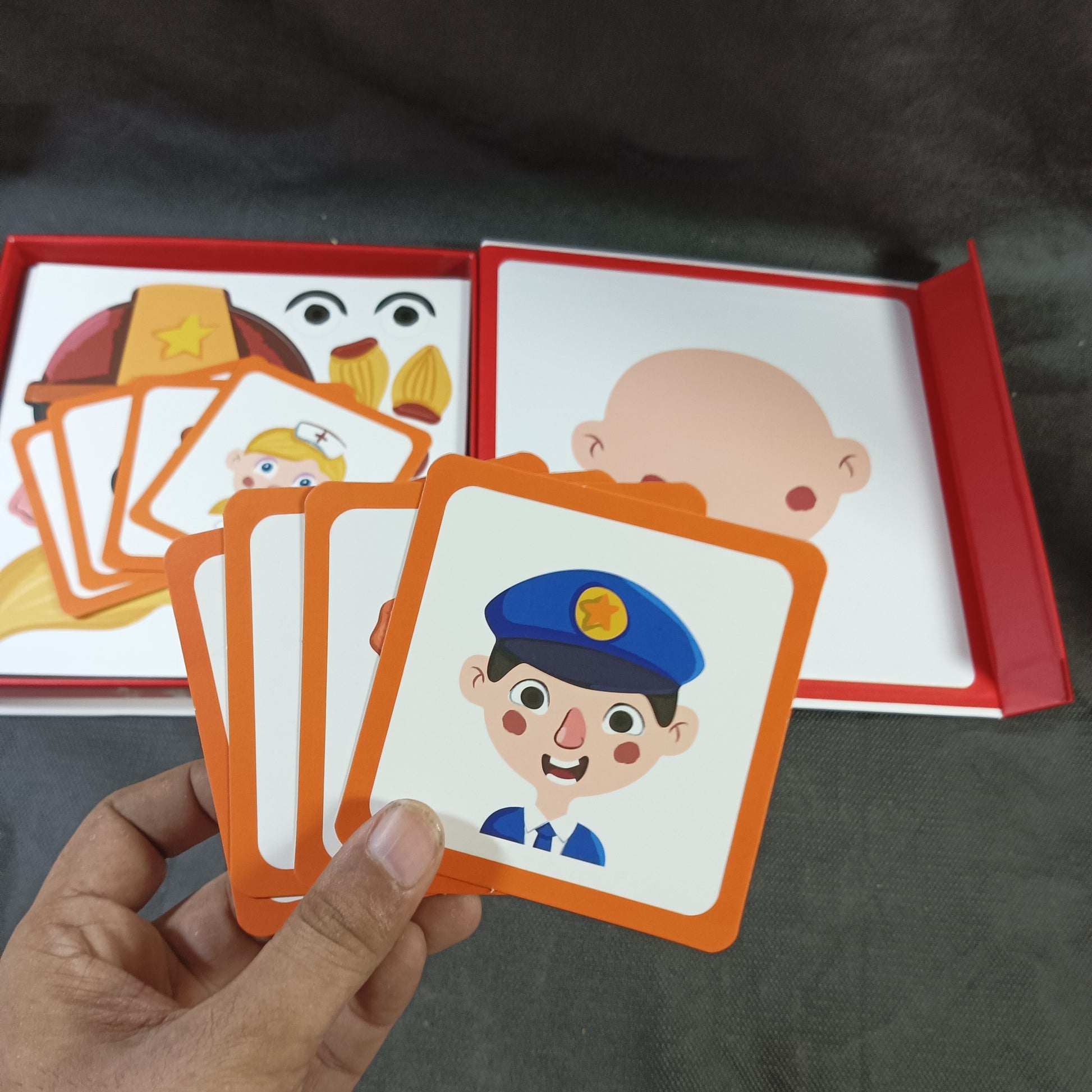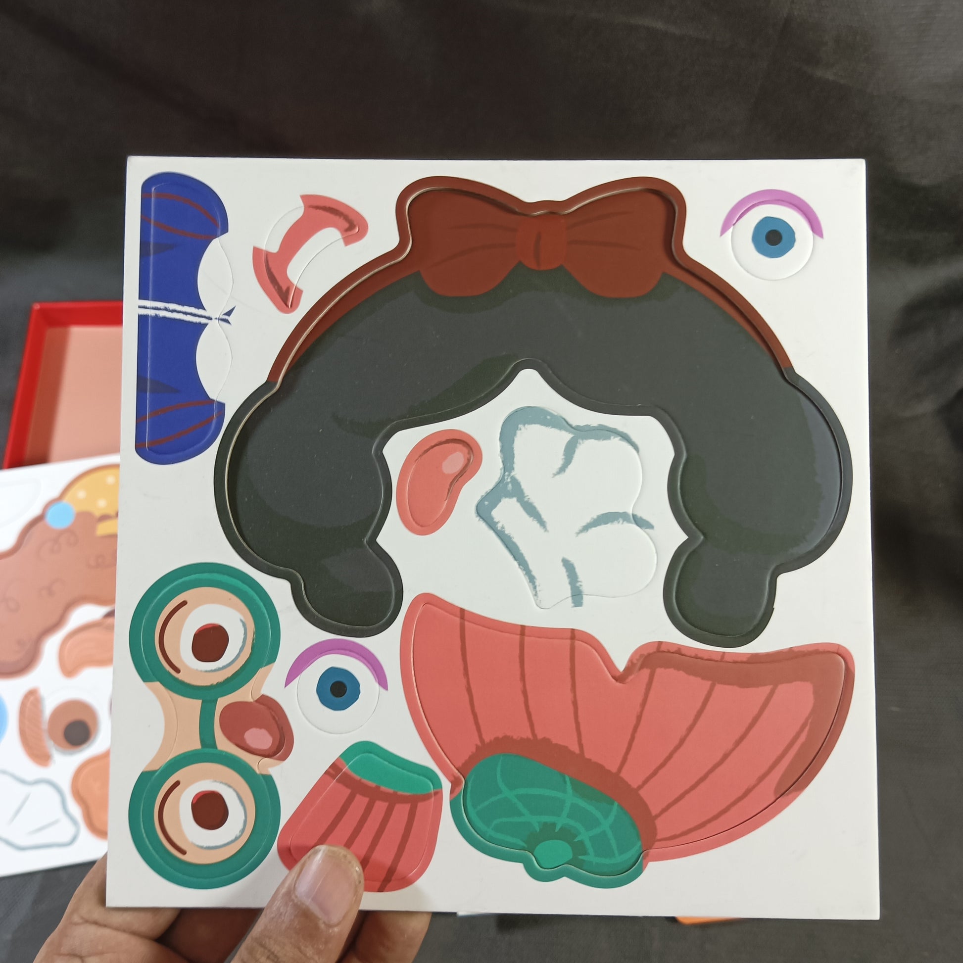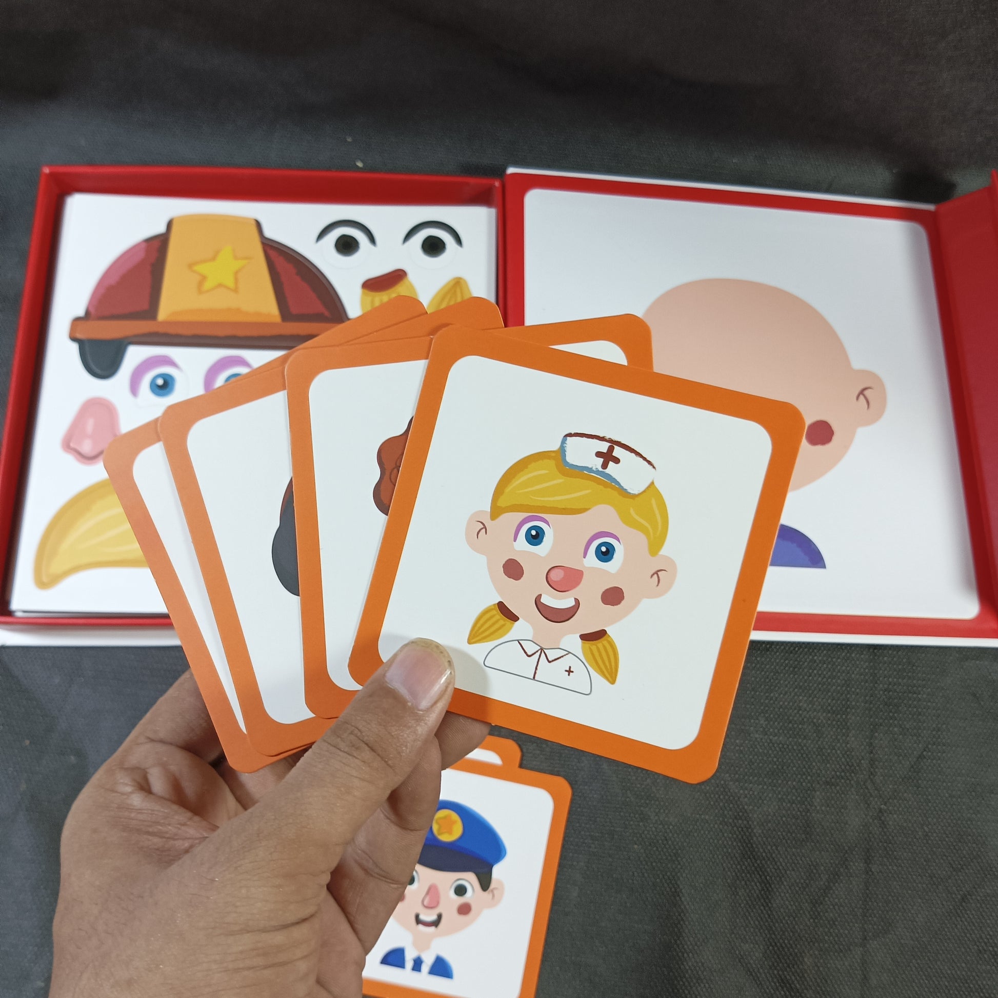 Let kids create silly, serious, or professional faces with this fun magnetic puzzle set! With dozens of facial pieces and character templates, children can build faces of police officers, nurses, clowns, firefighters, and more — sparking creativity and fine motor skills.